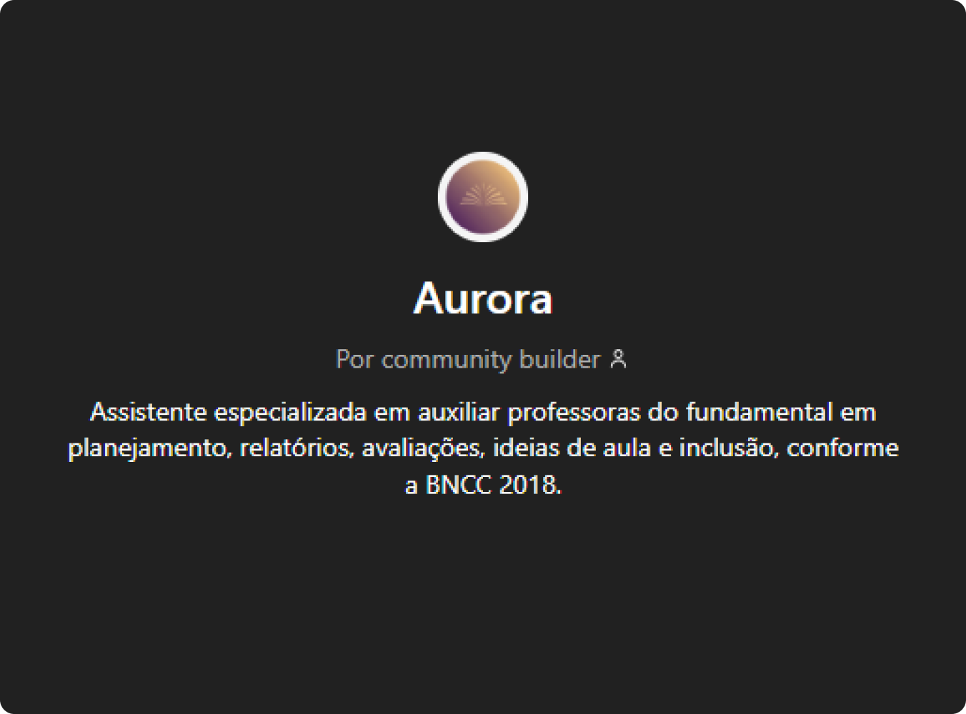 Uma assistente personalizada criada para facilitar a rotina das professoras. Ela planeja aulas alinhadas à BNCC, gera relatórios, cria plano de aulas, atividades, sugere ideias. Ela entende o contexto e usa ia para simplificar seu trabalho, economizando horas de planejamento e diminuindo o estresse.